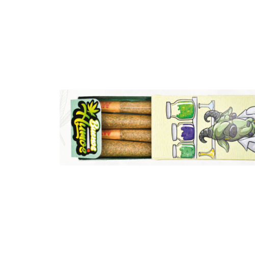 Caja con 4 pre rolls CBD, creados a partir de un mix de flores greenhouse (invernadero). Cada pre roll contiene 1gr aprox.