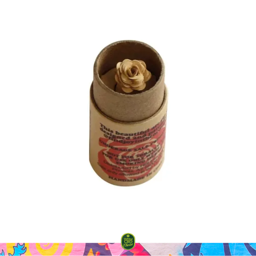 Cajita de cartón con un filtro de cartón pre-enrollado con pliegues en uno de los extremos formando los pétalos de una rosa. ¡Dale un toque divertido a tu experiencia!